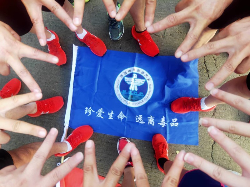 畅跑社团禁毒宣传六组7月5日吴王山森林公园打卡!
