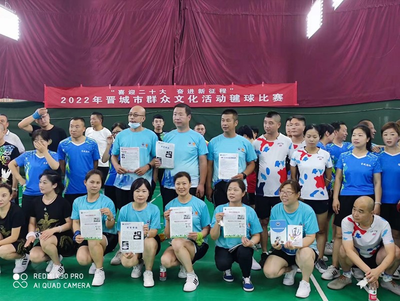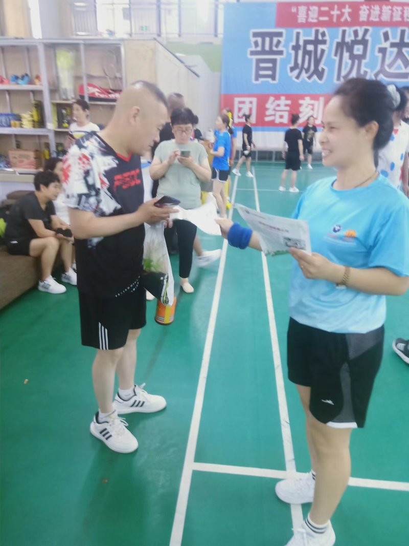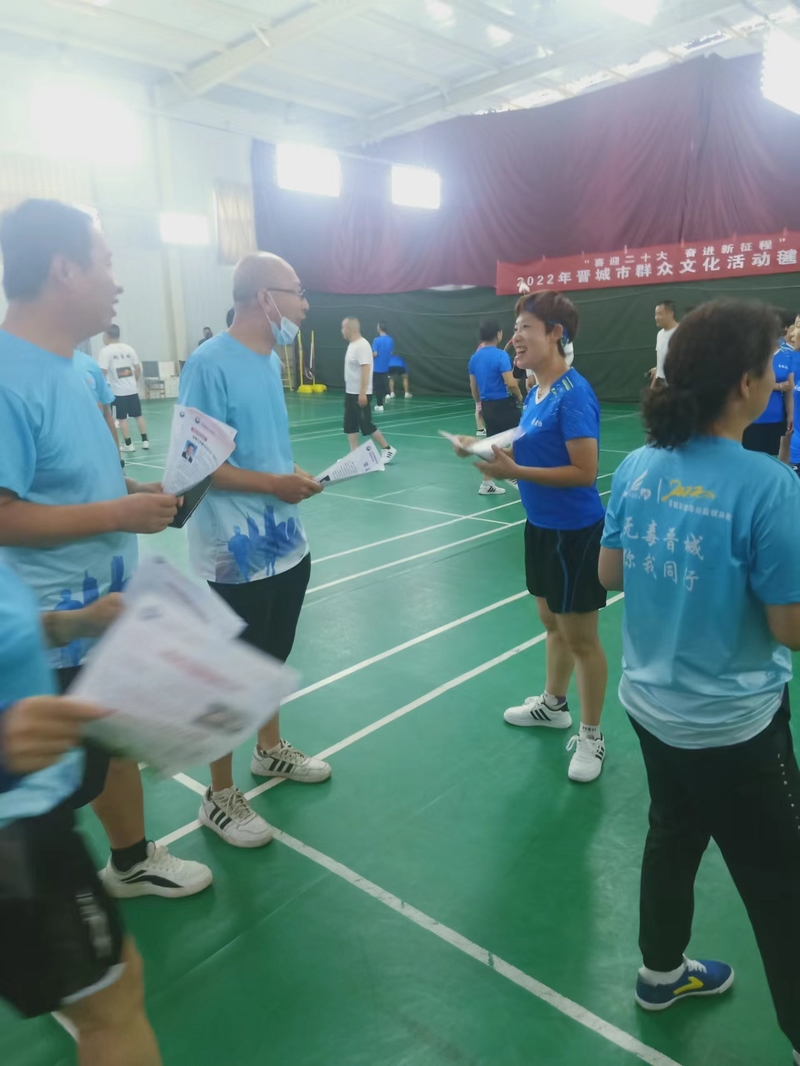 2022年7月4日,凤西毽跑团二队在羽体馆由晋城毽协举办的毽球交流赛间隙中进行禁毒宣传活动,我们的禁毒口号:珍爱生命远离毒品、无毒晋城你我同行、参与禁毒斗争构建和谐社会!