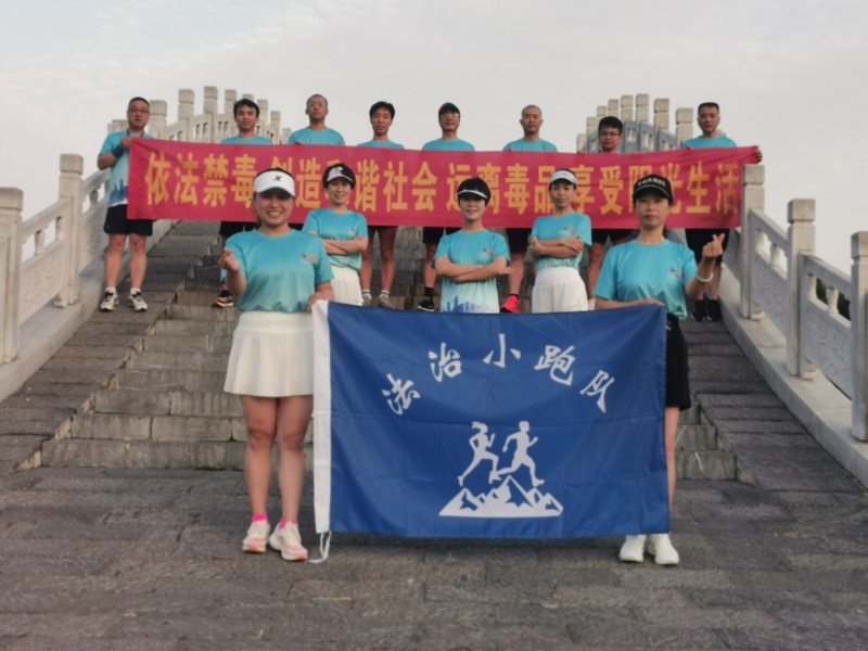 7月17日,法治小跑队3组全体成员,到带状公园约跑,进行禁毒宣传。统一穿禁毒跑服装,一起喊禁毒口号“人生再成功,沾毒一场空”!